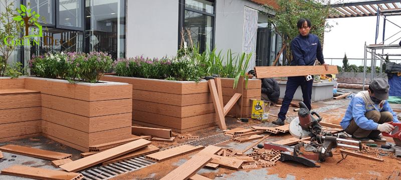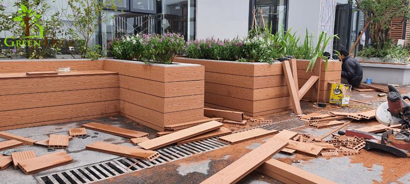 Thi công gỗ nhựa ốp bồn hoa ngoài trời