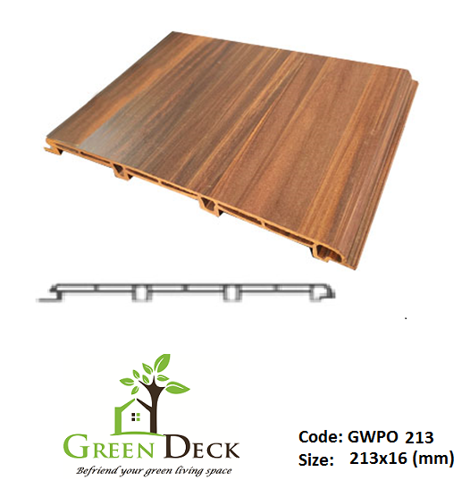 Gỗ Ốp Trang Trí Tường Trần Nội Ngoại Thất GWPO-213 được sản xuất trên dây truyền hiện đại nhập khẩu từ Đức đạt chuẩn Châu Âu, nguyên liệu sản xuất từ nhựa PVC nguyên sinh, bột gỗ, vỏ trấu và các phụ gia kết dính đặc biệt