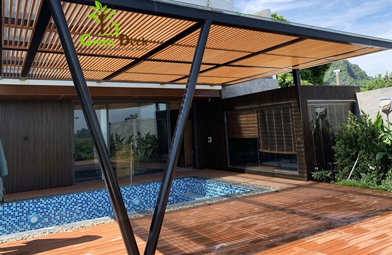 Mái Kính / Mái hiên không chỉ tạo điểm nhấn, tạo cảnh quan vẻ đẹp thơ mộng và nó còn tạo bóng mát, che mưa nắng cần thiết cho một khoảng không gian. Mái kính/ mái hiên sử dụng các thanh gỗ Greendeck... [Xem thêm...]