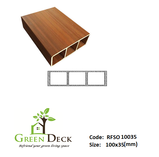 Lam gỗ nhựa che nắng ngoại thất RSFO 10035 được sản xuất từ nhựa PVC nguyên sinh, bột gỗ, vỏ trấu và các phụ gia kết dính đặc biệt trên dây truyền công nghệ hiện đại của Đức