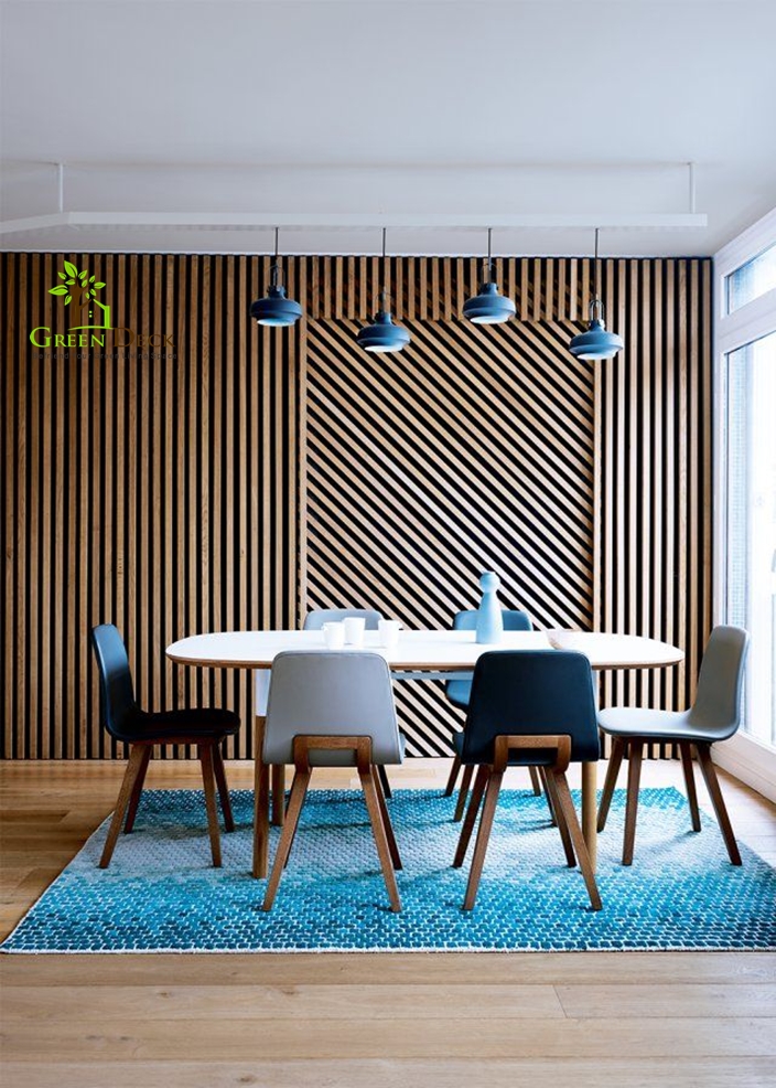 Thiêt kế sử dụng lam gỗ trang trí giúp không gian vô cùng sang trọng và cuốn hút [Xem thêm...]