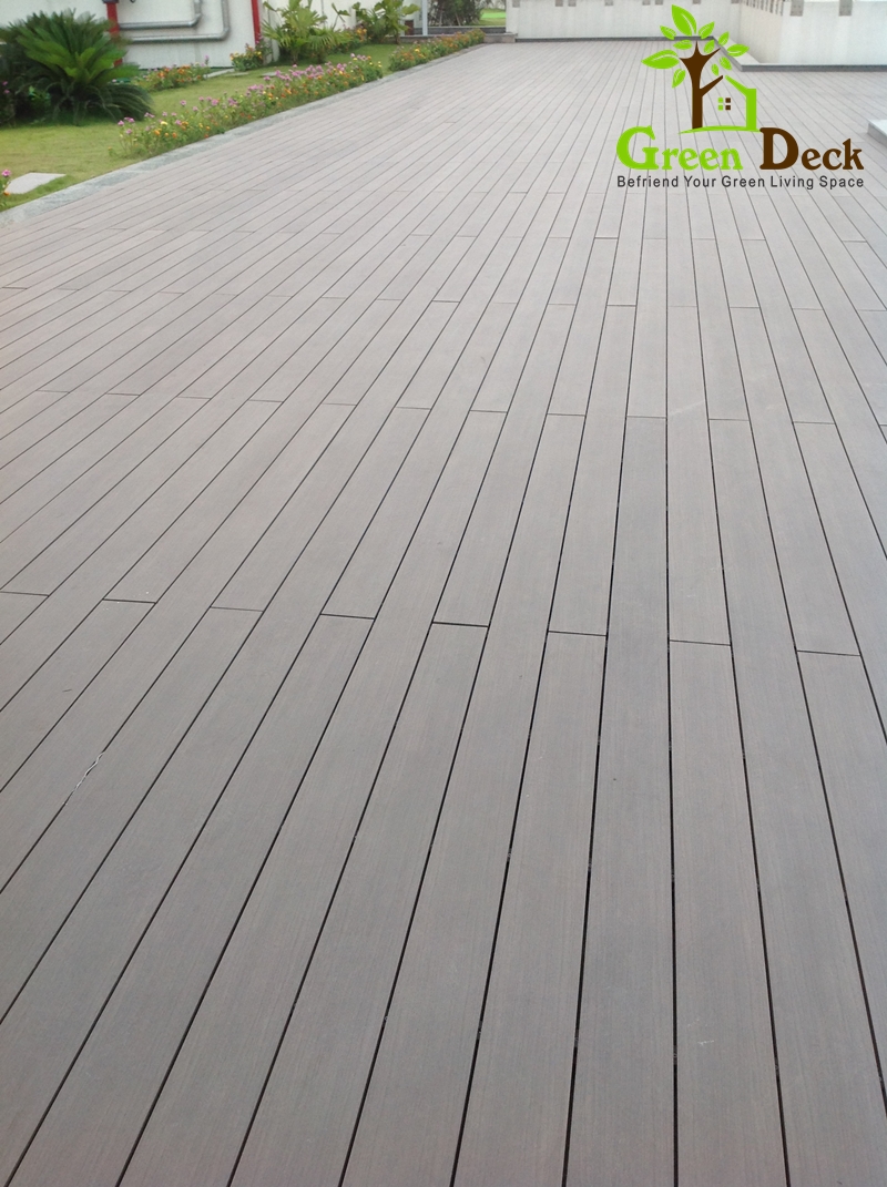 2. Vật liệu thay thế gỗ tự nhiên - Sàn gỗ composite: Chất liệu gỗ composite được xử lý cho thích ứng với môi trường ngoại thất: chịu được mưa nắng khắc nghiệt ngoài trời mà không cần sơn, không bị mối mọt hay mục nát như gỗ tự nhiên: